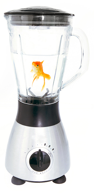 What the heck does ‘fish in a blender’ mean? I love the idea of a fish swimming about, able to check everyone out, clueless to the fate that awaits him in the blades below. Kinda sadistic, I know…but…